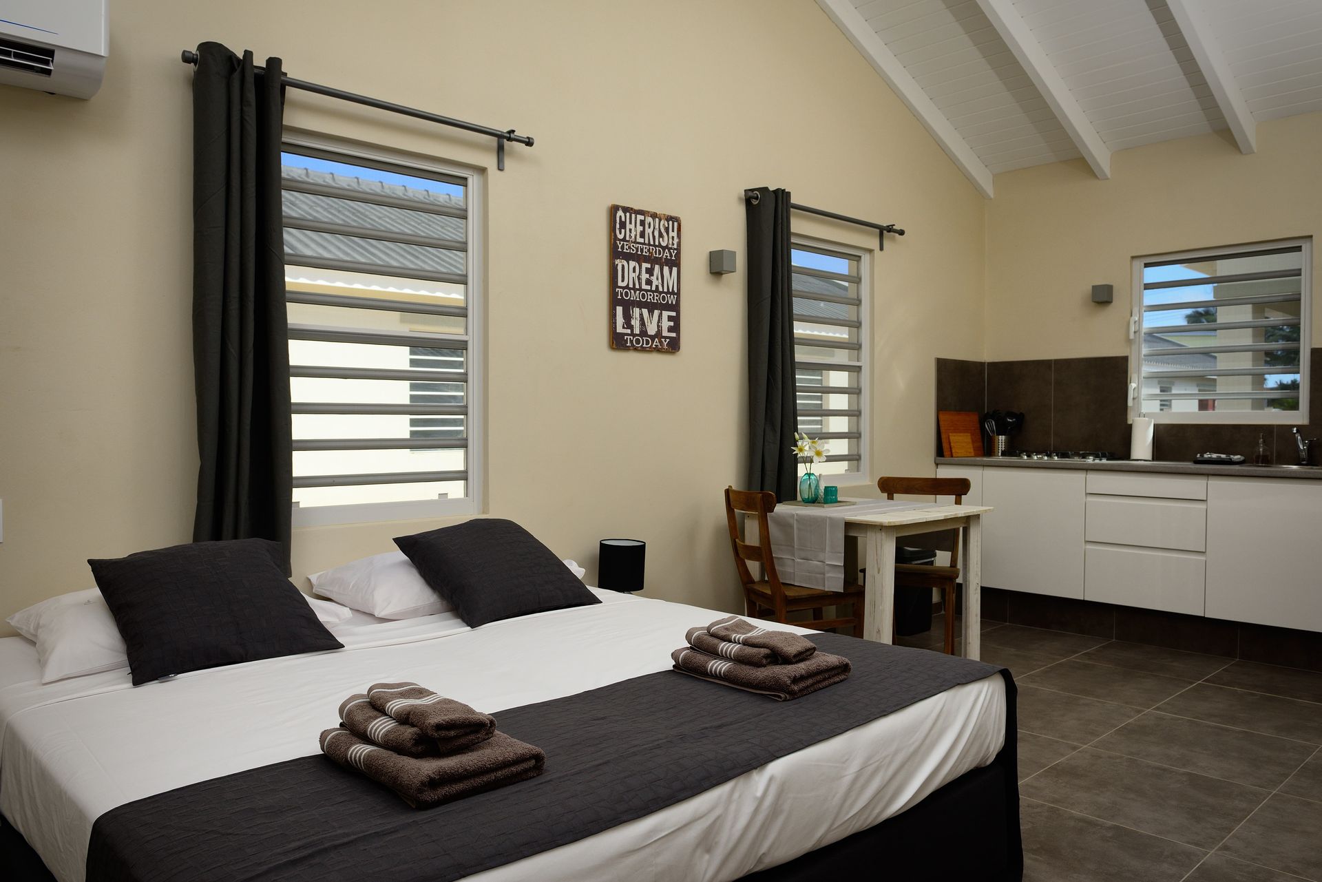 Relax in our inviting Studio, where modern design meets effortless island living. With its cozy ambiance and private terrace, it’s ideal for couples looking to enjoy a peaceful and refreshing Bonaire escape.